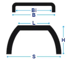 | Referencia | Bi (mm) | B (mm) | H (mm) | L (mm) | S (mm) | Neumáticos | Rueda |
