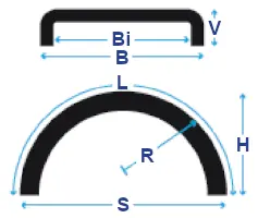 | Referencia | Bi (mm) | B (mm) | H (mm) | L (mm) | R (mm) | S (mm) | V (mm) | Neumáticos | Rueda |